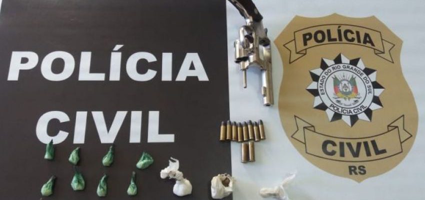 Na diligência, os policiais encontraram 10 porções de cocaína, uma porção de maconha e um revólver calibre. 32 com oito munições.