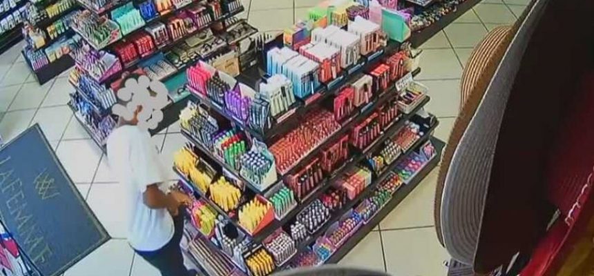 O homem mexe em mais alguns itens que estão no mostruário da loja para disfarçar e sai em seguida. O vídeo foi publicado no Facebook da empresa como um alerta para outros empresários.