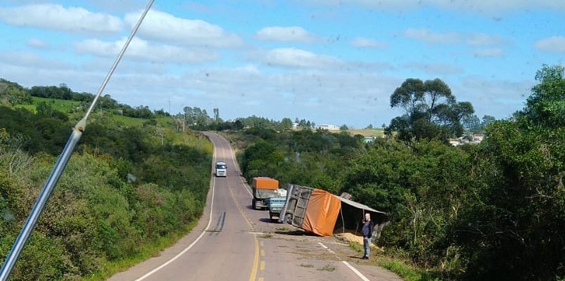 Condutores que trafegam na RSC-471 na manhã desta segunda-feira, próximo à hidráulica e trevo de Amaral Ferrador devem ter atenção na pista. Um caminhão tombou e está obstruindo parte da rodovia. Não há informação de feridos.