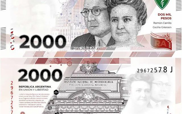 Segundo o Ministério da Economia, a nova nota terá imagens de Ramón Carrillo e Cecilia Grierson, emblemáticos médicos argentinos, em alusão à saúde pública.