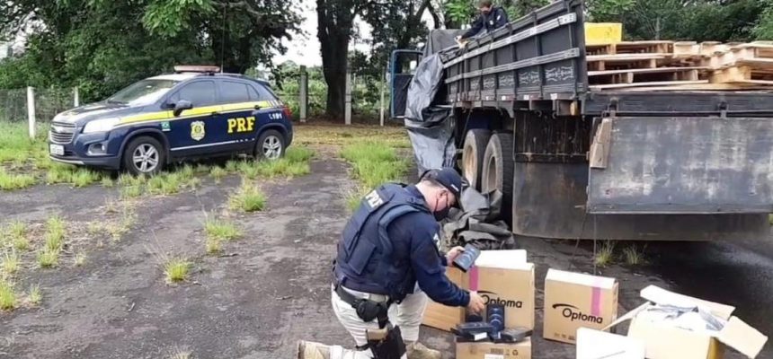 O motorista tentou fugir, mas acabou sendo interceptado. Os policiais rodoviários federais depararam-se então com a carroceria do caminhão totalmente carregada de aparelhos eletrônicos, cobertos por lonas plásticas. Conforme a PRF, telefones celulares e notebooks de última geração, além de materiais odontológicos, médicos e veterinários, foram encontrados.