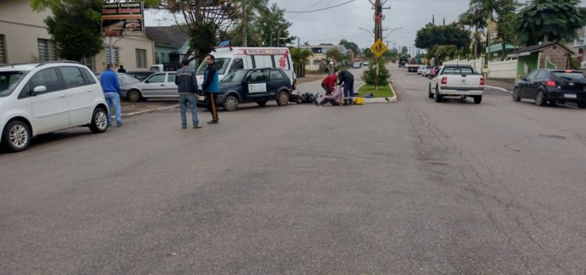 Por volta do meio dia desta segunda-feira (02), um acidente envolvendo uma moto e um Fiat Uno aconteceu na Avenida Principal de Chuvisca, próximo a Secretaria de Saúde do município.