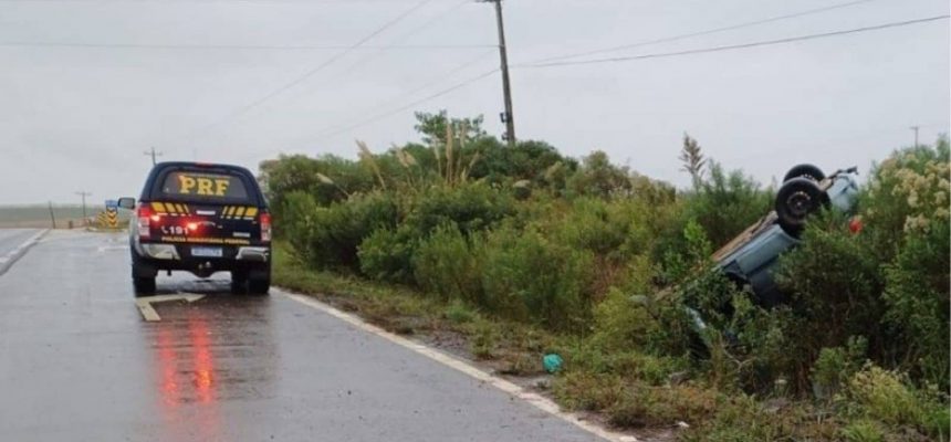 A Polícia Rodoviária Federal (PRF) registrou um acidente grave na BR-285, em Vacaria, por volta das 14h30 desta segunda-feira (7). Um Gol emplacado em Ituporanga/SC saiu da pista e capotou no km 104, no sentido Bom Jesus-Vacaria.