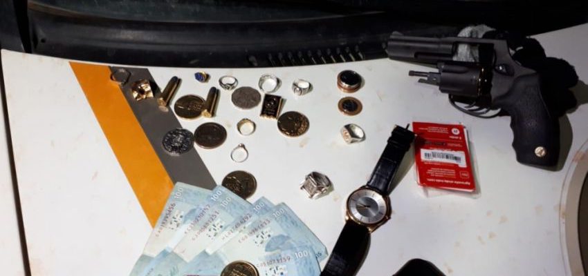 O trio foi abordado pela polícia enquanto seguia viagem em um automóvel Volkswagem Fox de cor prata. Os tripulantes, de 26, 21 e 17 anos, foram identificados e revistados, assim como o interior do veículo. Durante a varredura, foi encontrado um revólver calibre 38 com munições.