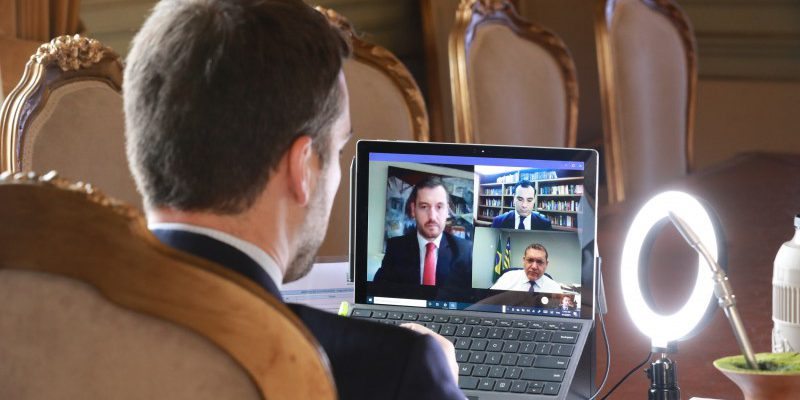 Com o objetivo de reafirmar a essencialidade da educação e do retorno imediato às aulas do Ensino Infantil e dos 1º e 2º anos do Ensino Fundamental no Rio Grande do Sul, o governador Eduardo Leite, o procurador-geral do Estado, Eduardo Cunha da Costa, e o procurador-geral de Justiça, Fabiano Dallazen, se reuniram, por videoconferência, na manhã desta segunda-feira (12/4), com o ministro do Supremo Tribunal Federal (STF) Kassio Nunes Marques.
