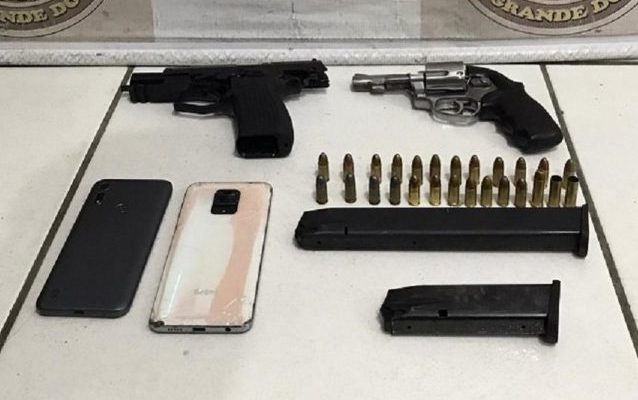 Durante a fuga, um dos homens deixou para trás um revólver calibre 38 com dois cartuchos deflagrados. Já o seu acompanhante estava de posse de uma pistola com 15 cápsulas de calibre 9 milímetros e carregador alongado, além de . No interior do veículo, com registro de furto, havia mais munição e outro carregador.