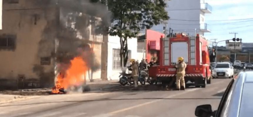 No começo da tarde desta sexta-feira, 2 de julho, um incêndio atingiu uma motocicleta e assustou moradores e pedestres no Centro de Camaquã. O caso ocorreu na rua Bento Gonçalves, no cruzamento com a rua Ari Pinheiro.