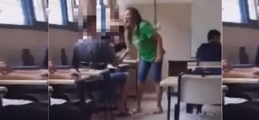 No vídeo, a professora questiona o aluno: “Minha casa tem seis banheiros! Quantos tem a tua? Quantas casas tu tem? Quantos apartamentos na praia tu tem? Quantos carros tu tem?”. O aluno, que tem 17 anos, responde: “Agora, tu é melhor do que eu porque tu tem mais casas e mais coisas?”. No que a professora retruca: “recalcado! Tu é um recalcado!”. E o registro se encerra com o aluno se desculpando: “Então tá. Desculpa, então, se eu fui aí do teu lado. Não posso chegar do teu lado. Não chego mais”.