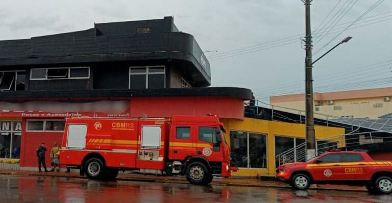 Uma equipe do Corpo de Bombeiros foi acionada na manhã deste domingo (7) para combater um incêndio que atingiu um prédio comercial em Camaquã, no sul do Estado. O fogo foi registrado no segundo andar do edifício, onde funciona uma casa noturna.