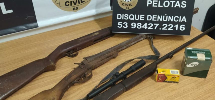 Na tarde desta quinta-feira (30), na Colônia Santa Silvana, em Pelotas, uma ação de cooperação entre Brigada Militar e Polícia Civil, resultou na prisão de um homem, de 50 anos, e na apreensão de três armas longas e munições.