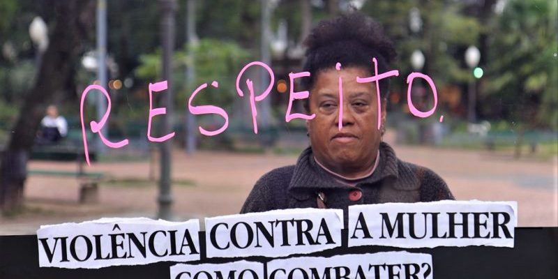 Uma tela de acrílico foi colocada no meio da praça, provocando a curiosidade do público. Na placa, havia um questionamento: “Violência contra a mulher: como combater?”. Pessoas que passavam pelo local foram convidadas a expressar na tela o que pensam sobre o assunto, utilizando palavras-chave.