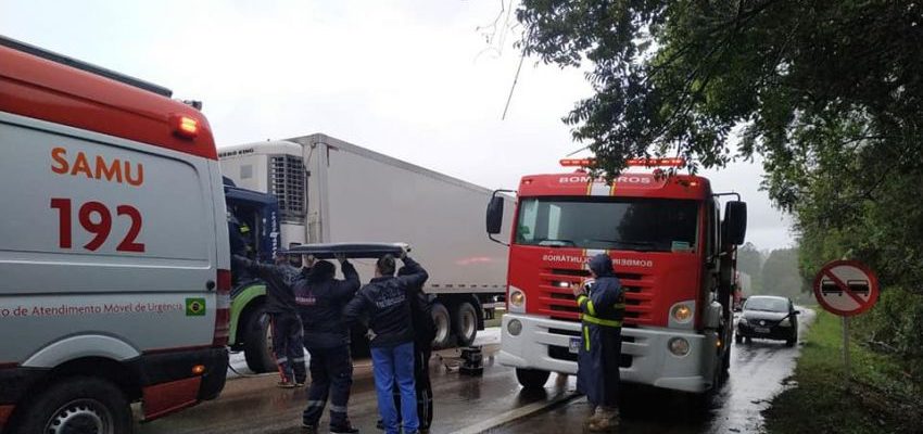 Uma colisão entre dois caminhões mobilizou equipes de resgate e a Polícia Rodoviária Federal na manhã deste sábado (5), na BR-116, em Tapes. O acidente ocorreu no quilômetro 347 da rodovia. O Corpo de Bombeiros Voluntários e o Serviço de Atendimento Móvel de Urgência (Samu) de Tapes, juntamente com o Corpo de Bombeiros de Camaquã, também foram chamados para atender a ocorrência.