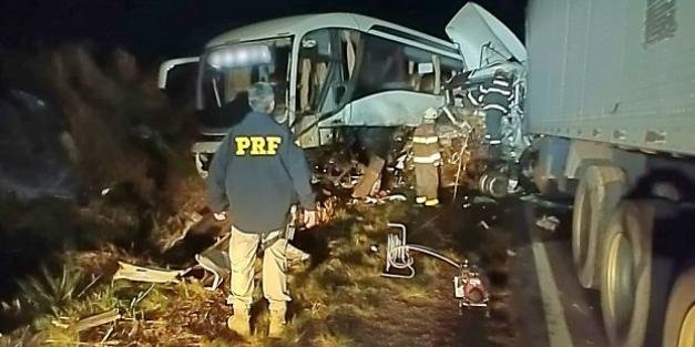 Em seguida, o caminhão Mercedes Benz colidiu também na lateral de um ônibus não emplacado. O condutor do caminhão, de 38 anos, que ainda não foi identificado, morreu no local.