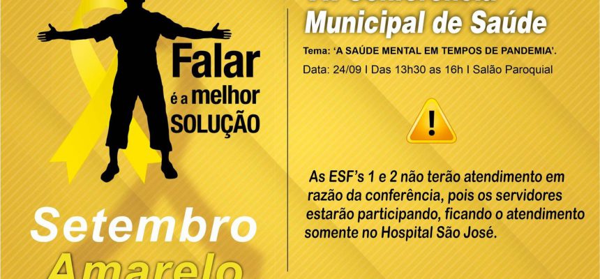 O Tema desta edição será “A Saúde Mental em tempos de Pandemia”, e terá como palestrantes os psicólogos do município Yuri Brutti e Jaqueline da Maia, em alusão ao “Setembro Amarelo”.