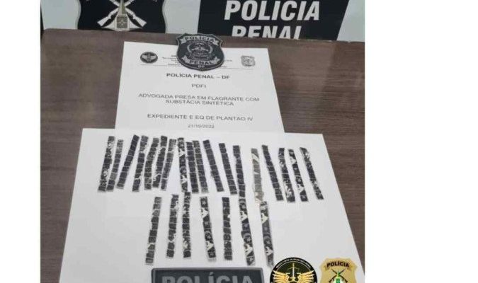 Uma advogada foi presa ao entrar em uma unidade da Penitenciária da Papuda, em Brasília, com 200 selos de LSD. Segundo a Secretaria da Administração Penitenciária (Seape), as drogas estavam costuradas em uma peça de roupa que seria entregue para um detento, cliente dela.
