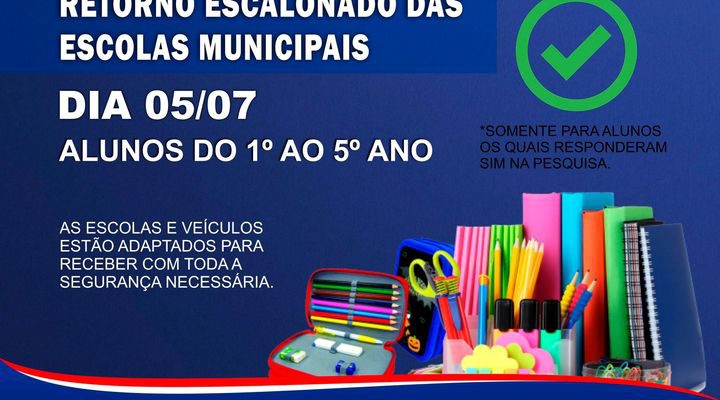 ATENÇÃO PARA O RETORNO ESCALONADO DA AULAS, PARA ALUNOS DO 1º AO 5º DA REDE MUNICIPAL