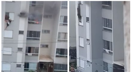 Testemunhas filmaram o momento em que o casal saltou do prédio. Pelo vídeo é possível ver quando o homem ajuda a mulher, de 53 anos, a se pendurar pelo lado de fora do edifício. Ele a segura pelas mãos. Em seguida, a vítima pula. Segundos depois, o morador coloca o corpo para fora da janela e se joga. Ambos caíram sobre o monte de colchões, que amorteceu a queda.
