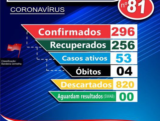 O município está com taxa de transmissão alta da covid-19, possui 53 casos ativos ainda transmitindo e 2 (duas) pessoas se encontram hospitalizadas em estado grave.
