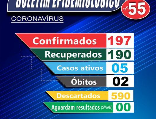 Após alguns dias sem nenhum caso ativo, no boletim 55 constam 05 casos ativos, sendo 03 no teste rápido e 02 através de coleta de swab.