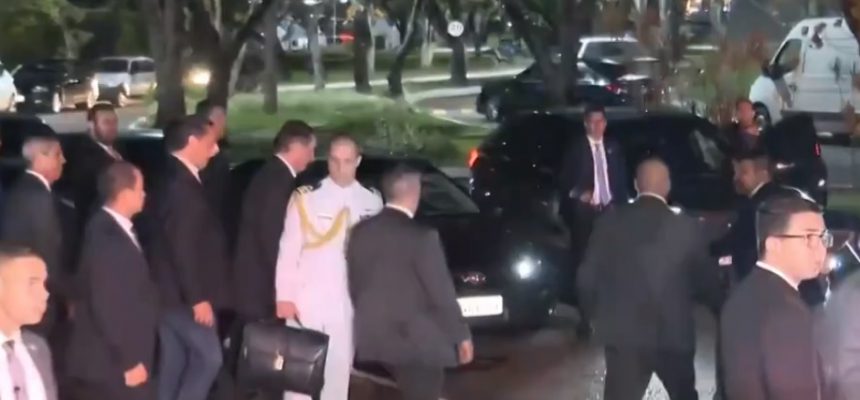 O presidente Jair Bolsonaro, há semanas sem se manifestar publicamente, foi na noite desta terça-feira (29) a um jantar das bancadas de seu partido, o PL, no Congresso Nacional.