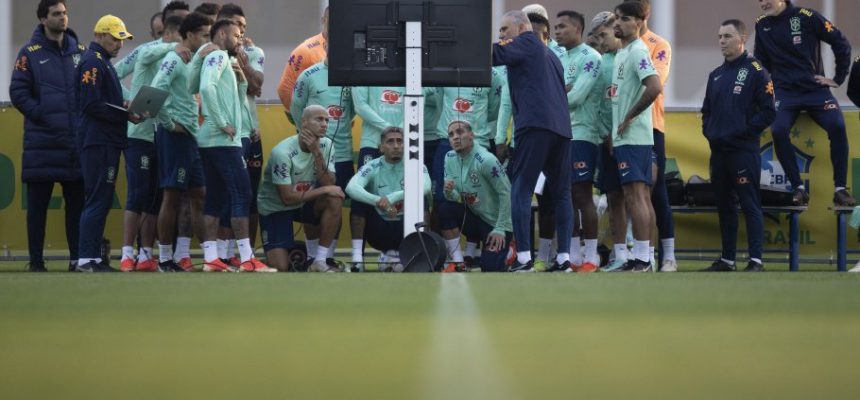 O técnico Tite ainda não definiu quem serão os titulares da Seleção Brasileira que vão enfrentar a Sérvia na estreia do Brasil na Copa do Mundo, na próxima quinta-feira (24). Ao menos no vestiário, Richarlison, Neymar e Raphinha ficam lado a lado.