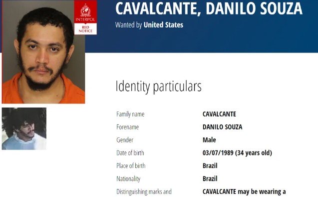 A Organização Internacional de Polícia Criminal (Interpol) incluiu em sua lista vermelha o brasileiro Danilo Cavalcante, que fugiu da cadeia nos Estados Unidos em 31 de agosto.