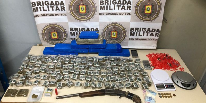 Com ele, foram encontradas uma garrucha e uma munição, oito quilos de maconha, material de embalagem para drogas, três balanças de precisão e uma quantia em dinheiro.