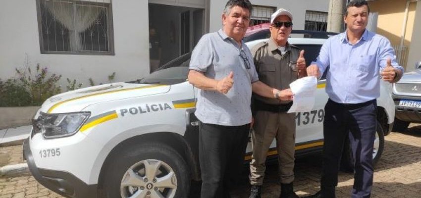 Amaral Ferrador recebeu, na manhã desta quarta-feira (23), uma nova viatura para a Brigada Militar (BM). A entrega ocorreu através do gabinete do deputado estadual Dirceu Franciscon (União Brasil) e contou com a presença do prefeito Nataniel do Val (PDT), do sargento Zeno, comandante da BM, e do assessor parlamentar do deputado Franciscon, o ex-vereador amaralense Paulo Silva.