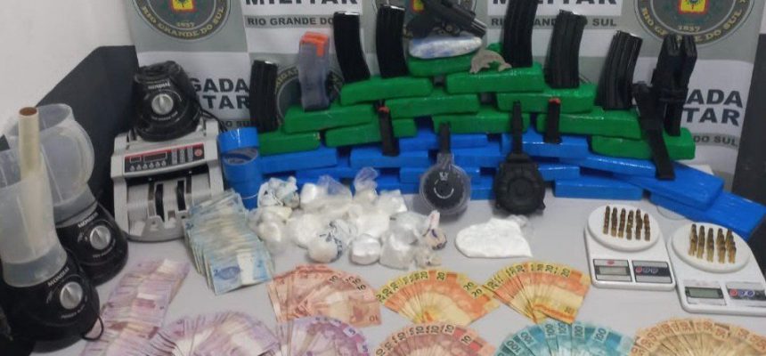 Ao todo, foram apreendidos mais de 22 quilos de drogas, entre tabletes de cocaína e maconha e porções de crack, mais de R$ 4 mil, uma pistola calibre .380, duas balanças de precisão, duas prensas hidráulicas, três liquidificadores, mais de 40 munições variadas, entre outros equipamentos.