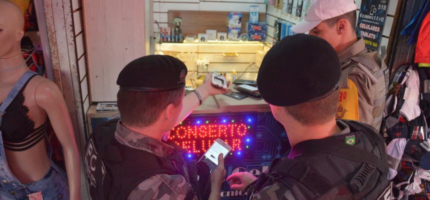 Elencado pelo novo comandante-geral da Brigada Militar, coronel Rodrigo Mohr Picon como uma de suas prioridades, o combate aos crimes de roubo, furto e receptação de celulares foi objetivo de operação no começo da tarde desta quarta-feira, em Porto Alegre. Policiais militares do 9º Batalhão de Polícia Militar (9º BPM) estiveram no Centro Popular de Compras, o POP Center, onde há várias lojas que atuam com venda e reparos de smartphones.