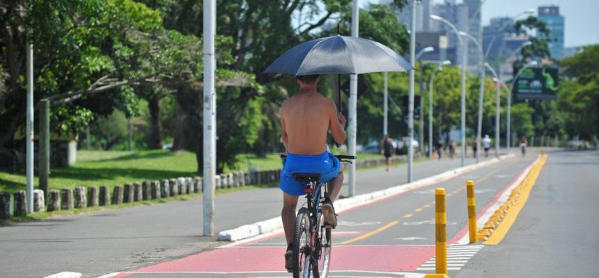 A cerca de 20 metros dali, três jovens tomavam banho e brincavam nas águas. “Estou com medo, mas vou me refrescar”, gritou a única mulher do grupo lá de longe. Um outro ciclista passou pela ciclovia carregando um guarda-chuva aberto enquanto pedalava. Era possível perceber no semblante das pessoas que precisavam estar na rua, seja em função do trabalho ou de algum outro compromisso, uma espécie de desconforto. E a sensação deve seguir, pois a previsão é de mais calor nos próximos dias.