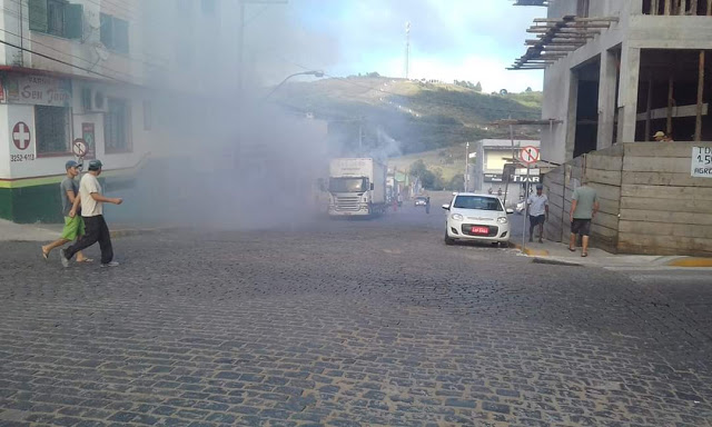 Um caminhão da Empresa São João, que realiza o transporte para a Rodoviária de Canguçu, incendiou na manhã de quinta-feira, dia 06, na Rua Gebes Bento, 293, em frente à Estação Rodoviária.