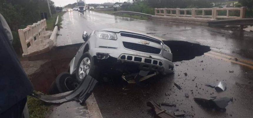 Na manhã desta sexta-feira (16), uma caminhonete caiu em buraco na ponte sobre ERS-474. O acidente ocorreu na Rodovia Freeway, no sentido de Santo Antonio da Patrulha. A ponte está localizada nas proximidades da empresa Ração Patrulhense.