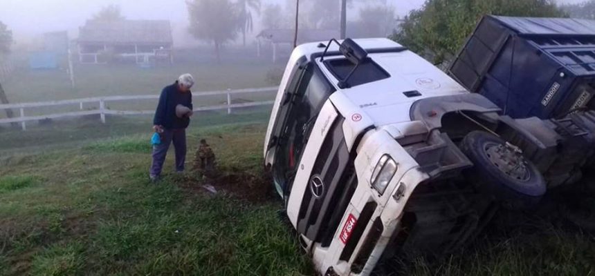 Na madrugada desta quarta-feira (17), uma carreta saiu da pista, próximo a ponte sobre o Rio Camaquã, na localidade Vau dos Prestes, interior de Encruzilhada do Sul.