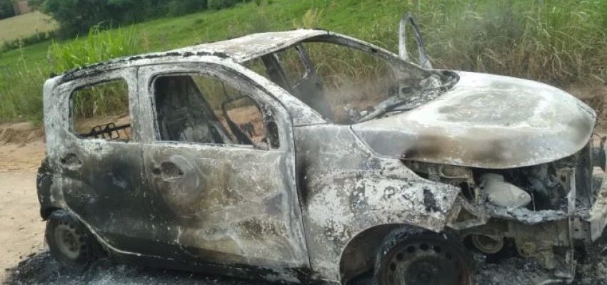 Um carro ficou totalmente queimado, na tarde desta segunda-feira (18), no interior de Dom Feliciano. O caso ocorreu por volta das 15 horas, na Vila Fátima.