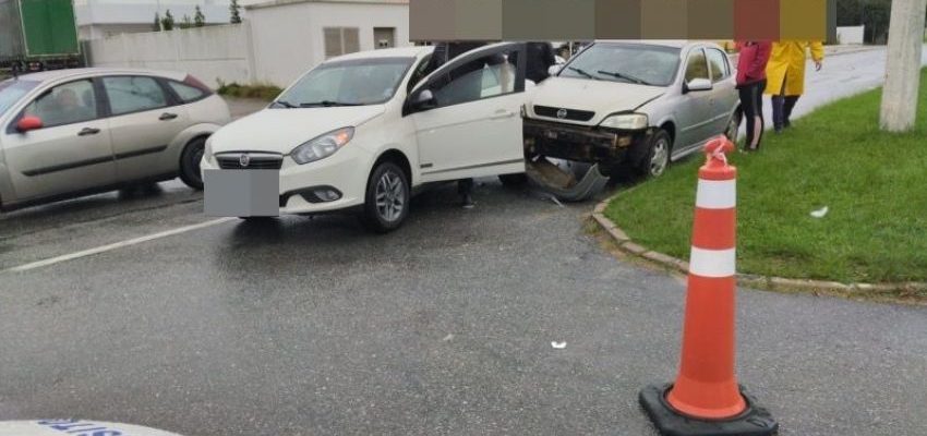 Apesar dos danos materiais nos automóveis, por sorte, ninguém ficou ferido. O dia é chuvoso e, naturalmente, a pista está escorregadia.