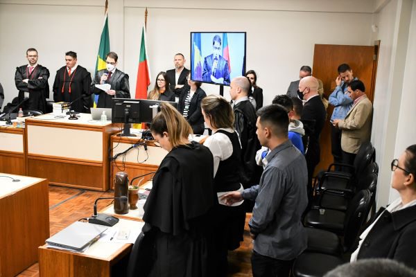 Foi encerrado às 21h45min desta terça-feira (5) o segundo júri do Caso Ronei Jr. com a condenação dos três réus. Alisson Barbosa Cavalheiro e Volnei Pereira de Araújo foram condenados a 35 anos e 4 meses de reclusão, cada um, e Geovani Silva de Souza condenado a 41 anos e 6 anos de reclusão. A pena de Geovani foi maior em razão de não ter sido beneficiado com a atenuante da menoridade relativa, uma vez que era maior de 21 anos na data dos fatos. Todos em regime inicial fechado.