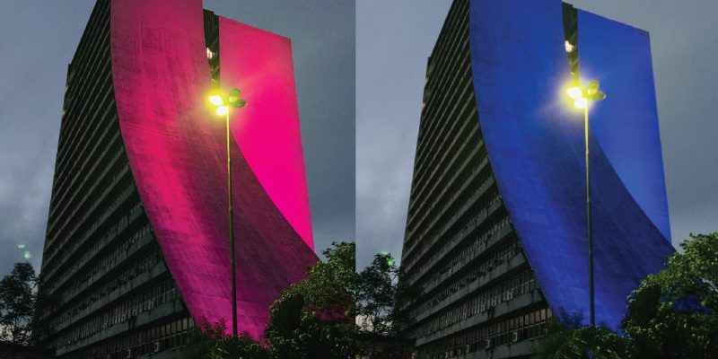Neste mês, a fachada do Caff (Centro Administrativo Fernando Ferrari), em Porto Alegre, conta com uma iluminação especial que celebra o Janeiro Lilás, Mês da Visibilidade Trans. O prédio estadual, localizado na avenida Borges de Medeiros, 1.501, está iluminado com as cores azul e rosa, presentes na bandeira do orgulho transgênero.