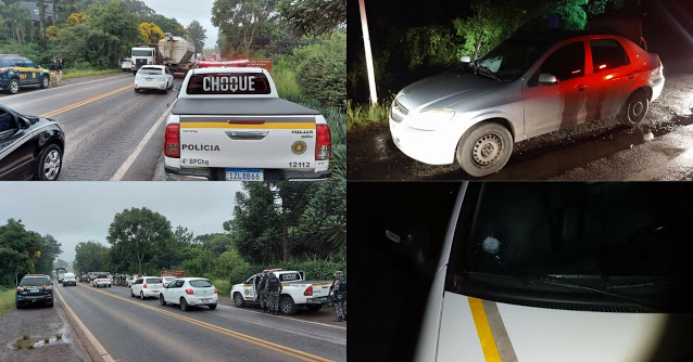 A viatura policial foi alvejada por disparos no vidro, capô e giro flash, mas nenhum policial restou ferido na ocorrência. Diante dos fatos os envolvidos foram conduzidos à Delegacia de Polícia de Bento para o registro da ocorrência.