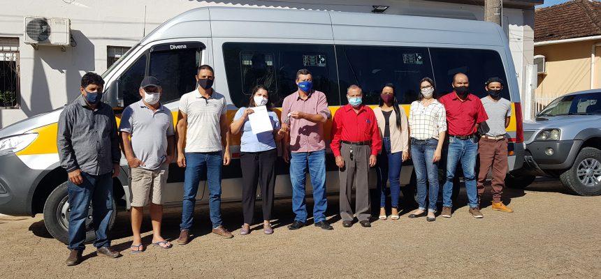 Servidores públicos municipais, juntamente com o prefeito Nataniel e o vice João Paulo, receberam a nova van da secretaria municipal da Educação.
