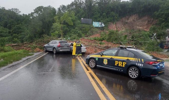 – Km 203 (Picada Café) – Interdição total. Sem previsão de liberação. Queda de barreira.