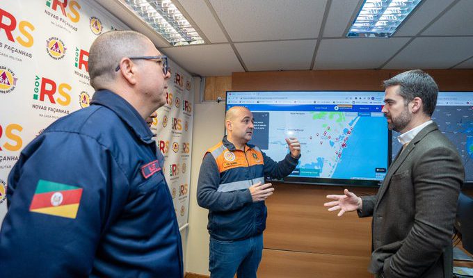 O governador esteve no centro de operações da Defesa Civil Estadual, em Porto Alegre, para conferir as nossas ações de apoio à população durante o ciclone. “É uma situação grave, em especial para alguns municípios, e o governo está mobilizado para preservar vidas”, declarou.