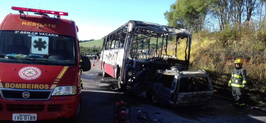 Conforme informações da Comando Rodoviário da Brigada Militar, um VW/quantum, de Caxias do Sul, trafegava em sentido Campestre da Serra a Vacaria e teria invadido a faixa contrária e colidido frontalmente contra um ônibus. O coletivo trafegava no sentido Vacaria a Campestre da Serra. Os veículos acabaram pegando fogo.