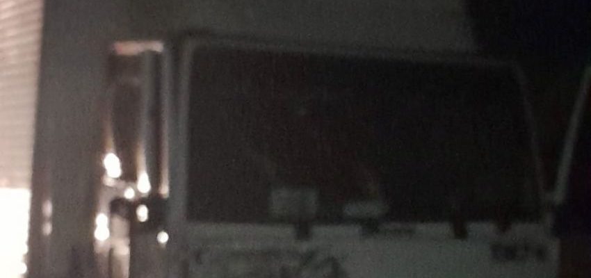 A colisão ocorreu entre um caminhão e um carro, um Fiat Uno de cor vermelha.