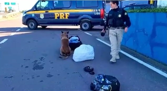Os policiais realizavam uma operação de combate ao crime na BR 101 quando abordaram um ônibus que fazia a linha Florianópolis – Caxias do Sul. Durante a verificação das bagagens, o cão farejador Baruk identificou odor de componentes ilícitos em uma das bagagens despachadas.
