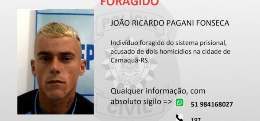 Na tarde desta quinta-feira, 11 de novembro, a Polícia Civil divulgou informações sobre um foragido do sistema prisional. João Ricardo Pagani Fonseca está sendo procurado por órgãos de segurança.