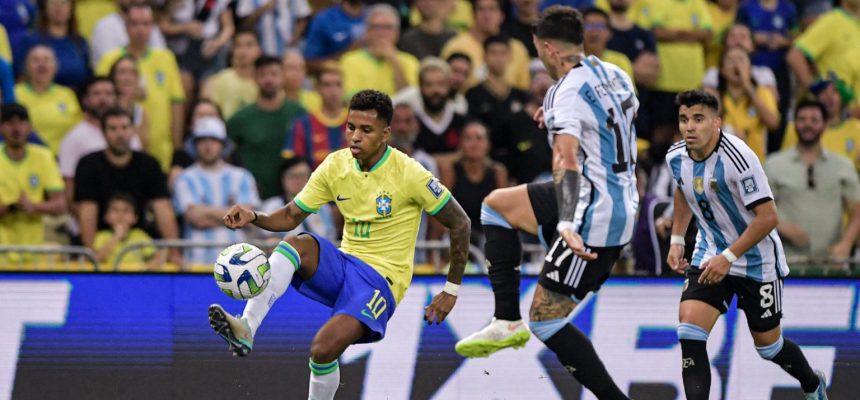 A Argentina se mostrou mais capaz de provocar desequilíbrio na defesa do Brasil nos primeiros minutos, enquanto os comandados de Fernando Diniz insistiram nos cruzamentos, que em nada assustaram Dibu Martínez. A Seleção Brasileira tentou pressionar a saída de bola para retomar a posse rapidamente e gerar situações de gol.