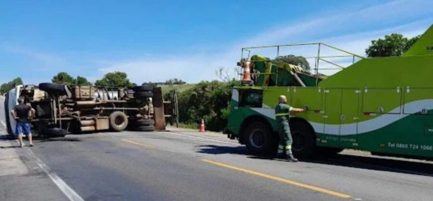 Duas pessoas ficam feridas em tombamento de caminhão na BR-116