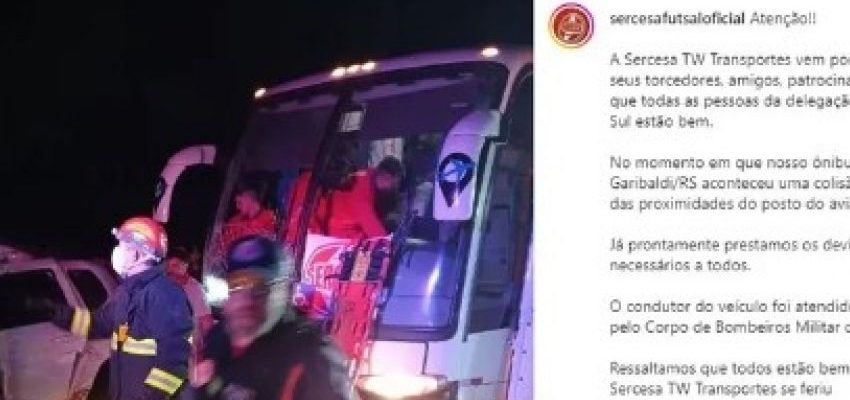 “A Sercesa TW Transportes vem por meio desta nota informar, seus torcedores, amigos, patrocinadores, apoiadores, familiares que todas as pessoas da delegação que retornava de Caxias do Sul estão bem.