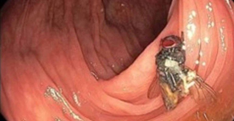 Um grupo de médicos ficou completamente em choque quando descobriu, durante uma colonoscopia de rotina, que havia uma mosca viva morando dentro do cólon transversal de um homem adulto.